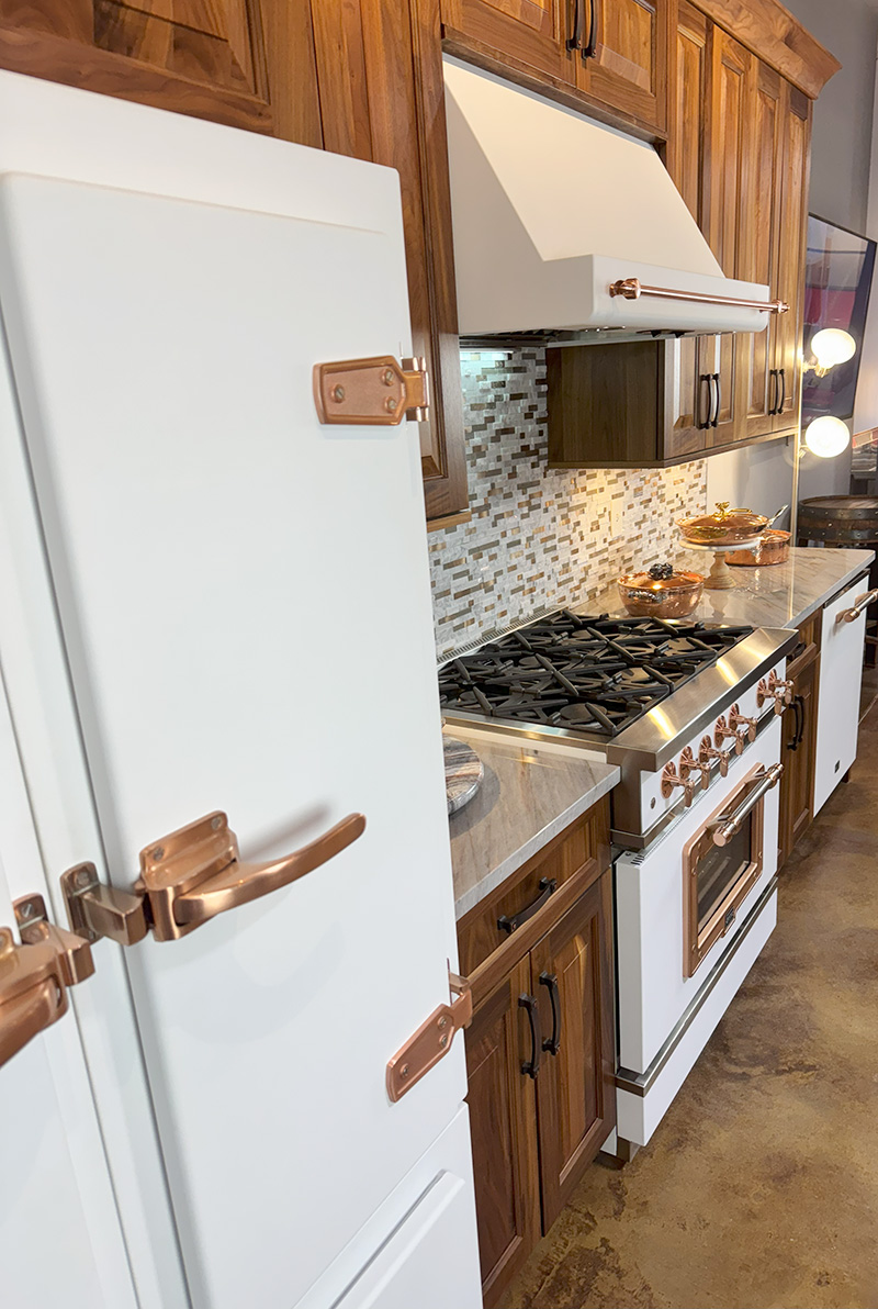 To bring this vision to life, we partner with some of the most trusted names in the kitchen world. Bold and beautiful Big Chill appliances offer a retro-modern flair that blends seamlessly with today’s lifestyles. Big Chill appliances will fit into your current kitchen decor, or we can have Showplace Custom Cabinetry design a unique, completely bespoke space. They offer endless design possibilities, whether your dream is a vintage-inspired retreat, a sleek modern kitchen, or a warm, welcoming farmhouse style.