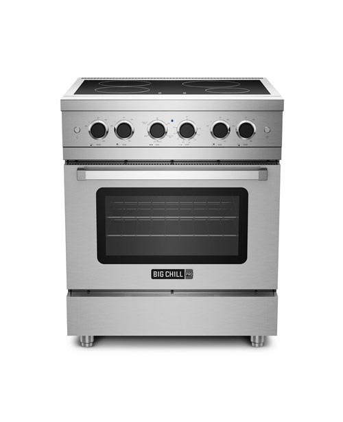 Big Chill Pro Ranges deliver professional power and modern design, combining serious performance with a sophisticated aesthetic. The cooktop surface delivers the efficiency and precise control of induction, paired with an oversized oven ideal for meal prep and entertaining. PLEASE NOTE: Requires hard-wiring to the household electrical system or a four-prong electrical cord (cord not included) and induction pans.