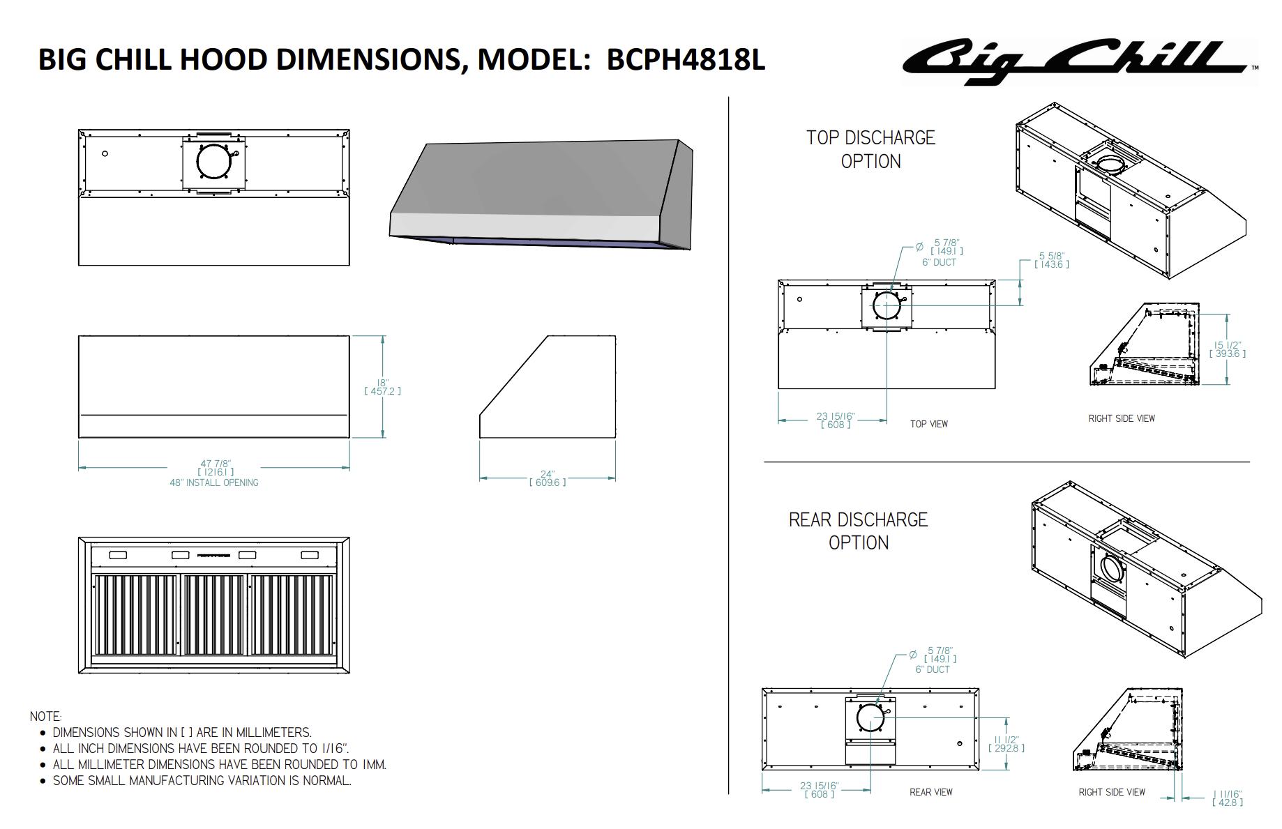 Big Chill Pro ventilation hoods offer enhanced power and performance to effectively remove smoke, odors, and grease from your kitchen. Seamless design is paired with heavy-duty construction to offer uncompromised durability, functionality, and style. Pair with any Big Chill Pro range. Designed to be the perfect complement to the Pro Ranges in style and performance. Built from commercial-grade 18-gauge 300 stainless steel, with rounded edges and hand-welded by our master welders, these hoods exhibit a seamless, perfect appearance.