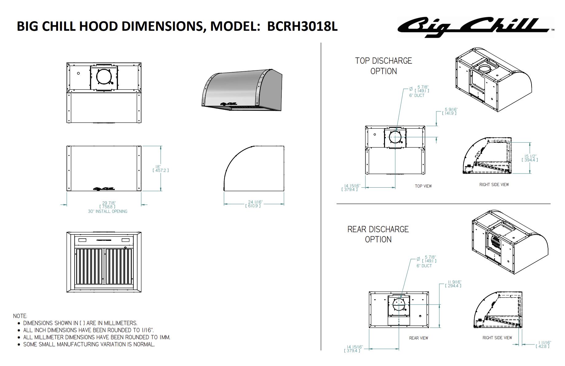 • Vent: External, reversible top or rear exhaust