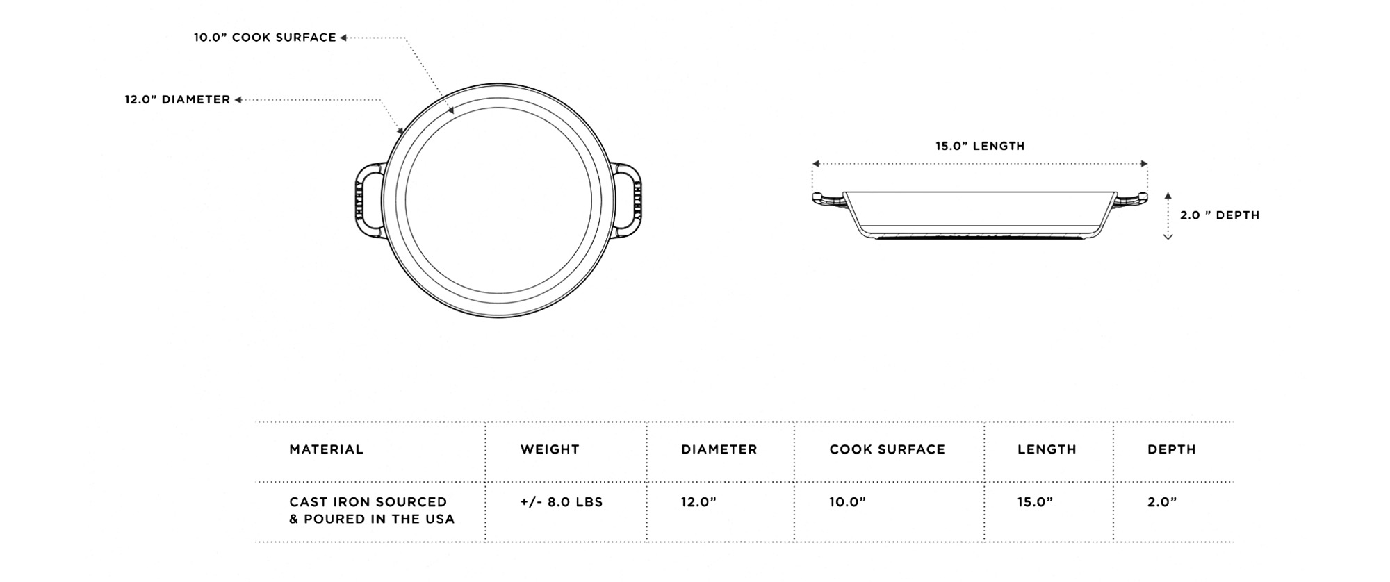 Smithey designed the Dual Handle Skillet No. 12 as a variation of their best-selling No. 12 Traditional Skillet. With two handles crafted for a natural, comfortable grip, this piece makes carrying meals from stovetop to table simple and secure.  They've also opened the wall angle of the pan slightly to provide additional capacity and better access to the cooking surface.  Carefully crafted with Smithey’s pledge to exceptional quality, this skillet is perfect for meals that move from range to oven to table.